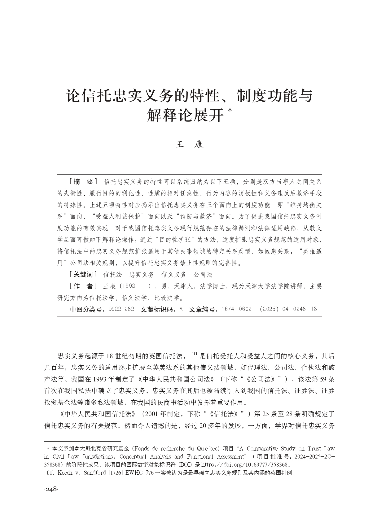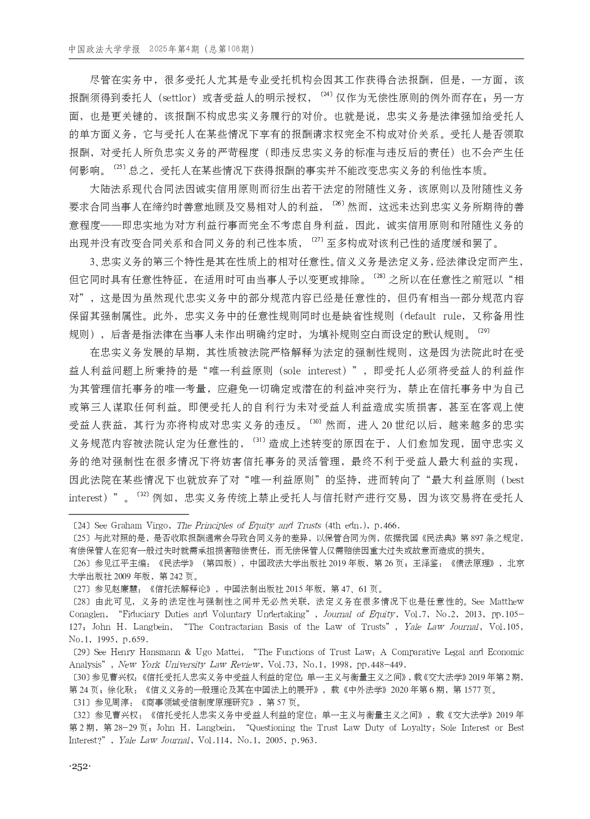 2025年第4期:论信托忠实义务的特性、制度功能与解释论展开