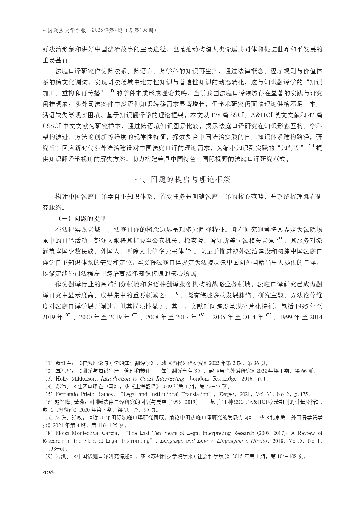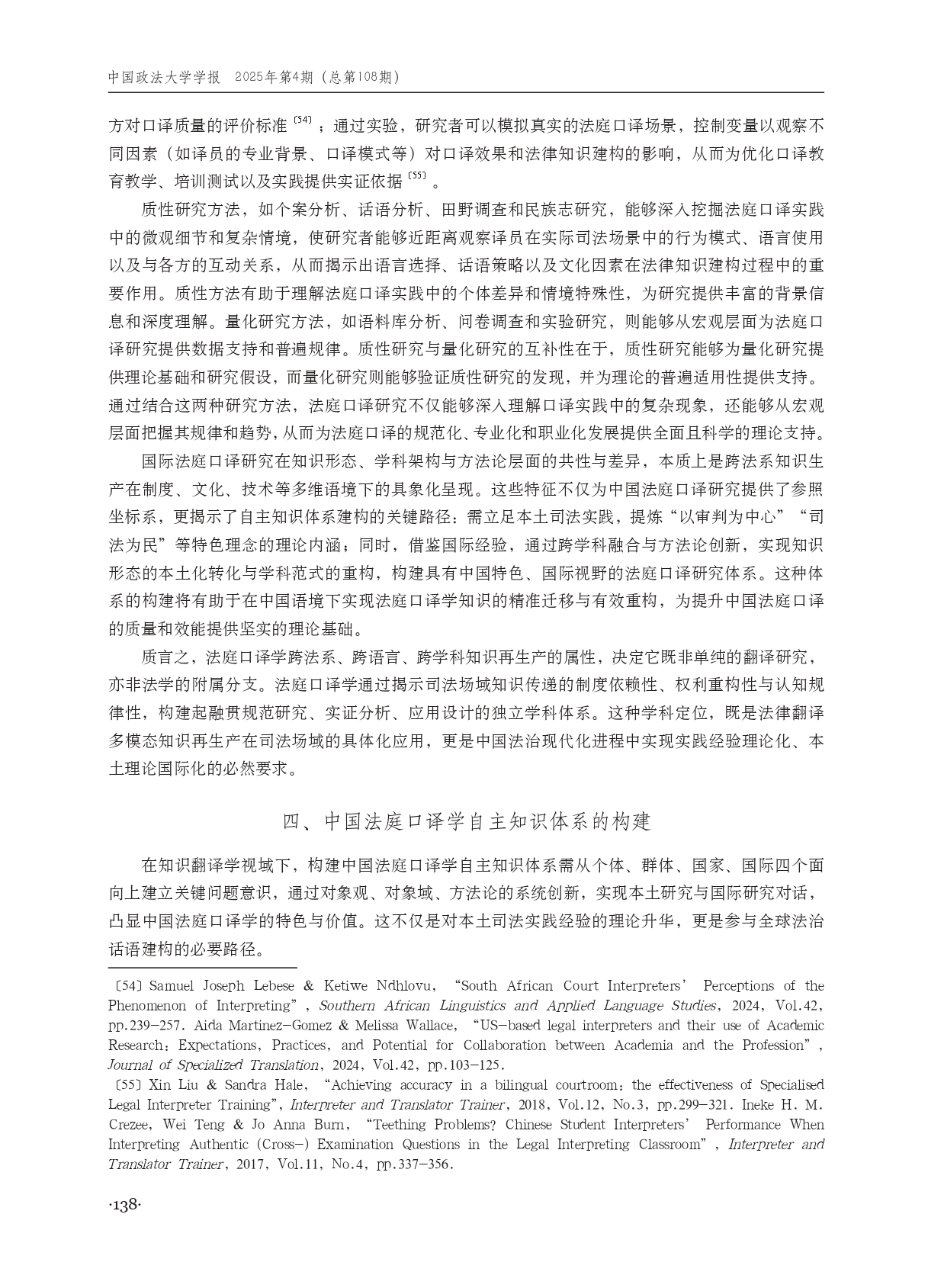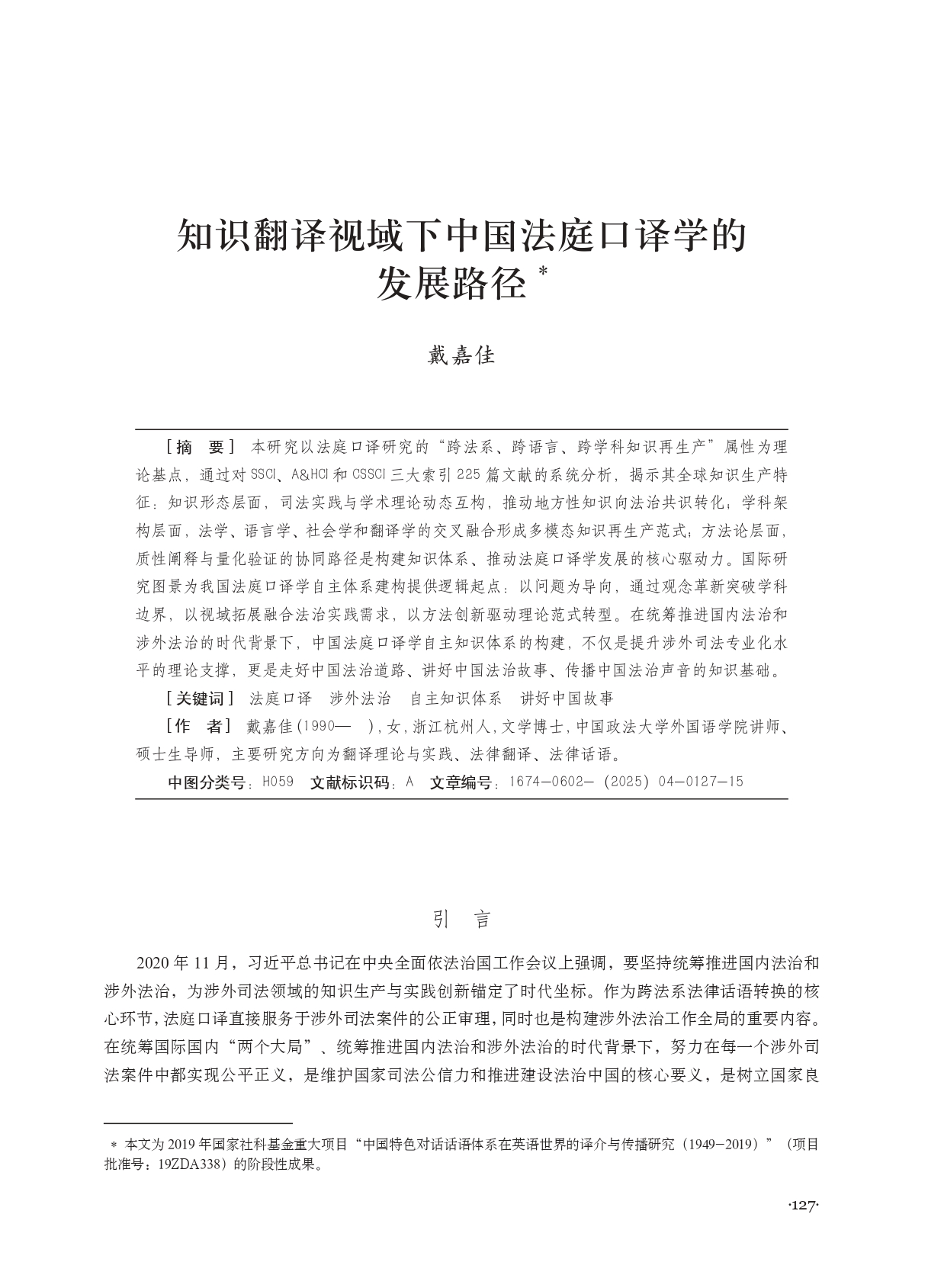 2025年第4期:知识翻译视域下中国法庭口译学的发展路径